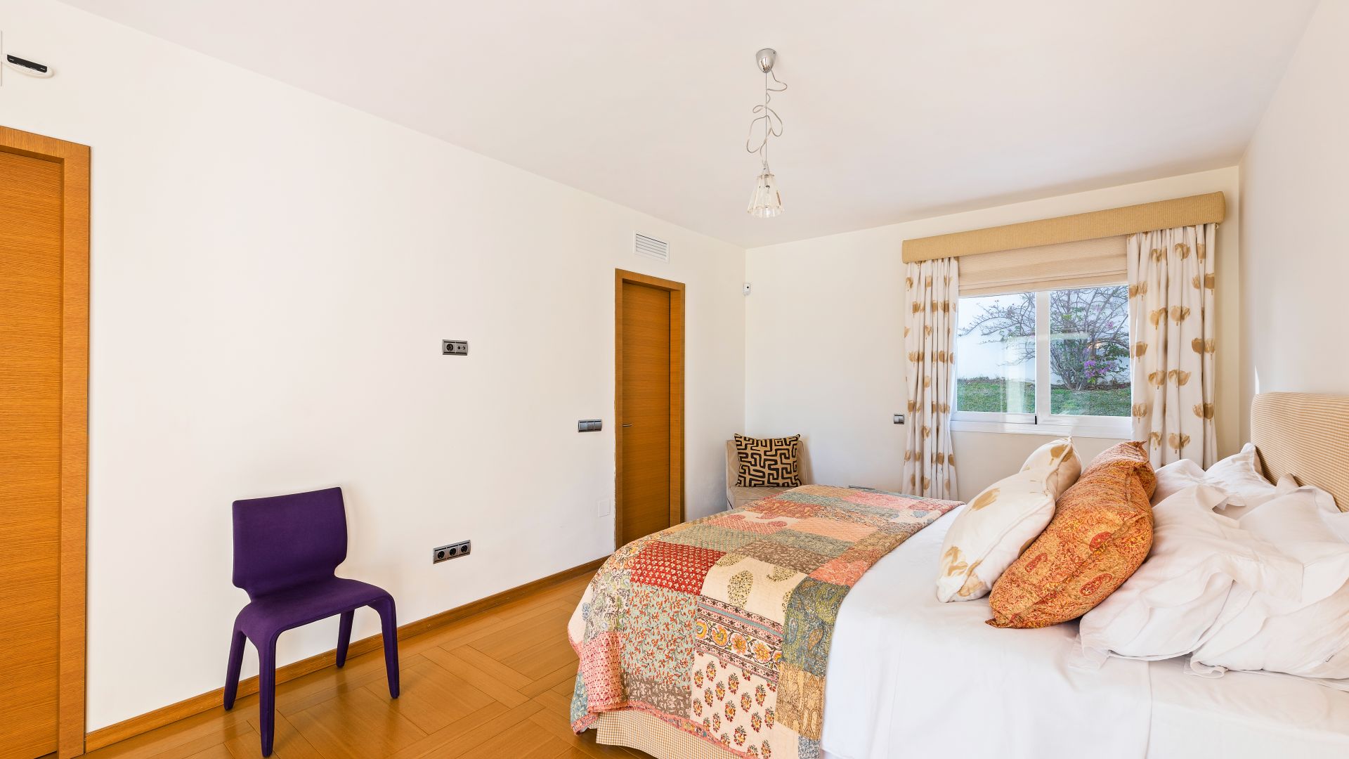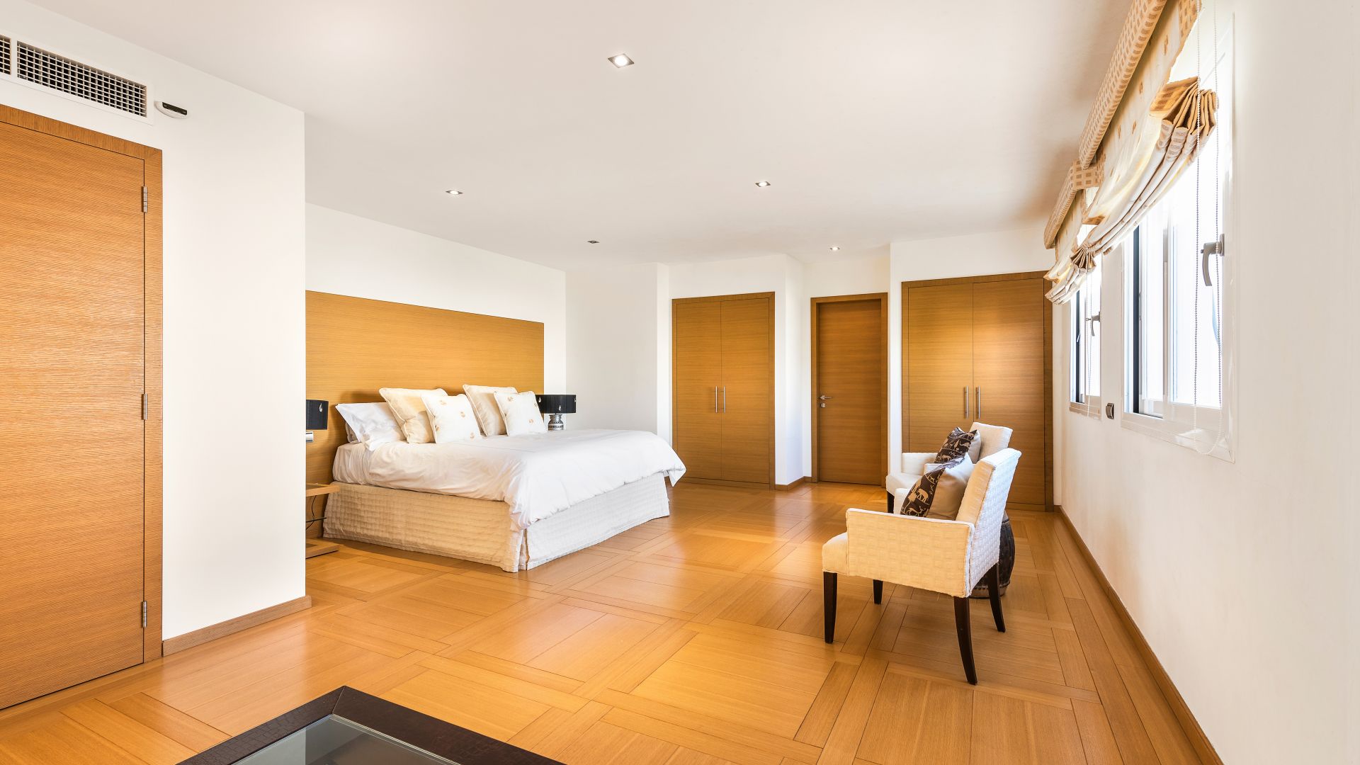 Upstairs, the entire floor is dedicated to the main suite, which includes a private sitting area, a dressing room and an en suite bathroom. An additional room on this level serves well as a home office or media room. The villa also includes a separate staff apartment, utility areas and generous storage space.